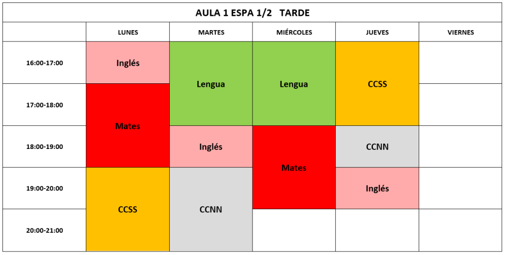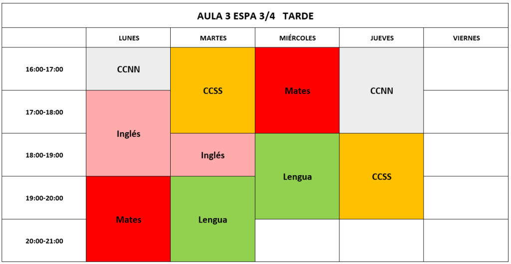 La Educación Secundaria para Personas Adultas (ESPA) es la adaptación de la ESO para las personas adultas (mayores de 18 años). Al finalizar estos estudios se alcanza el título de Graduado/a en Educación Secundaria Obligatoria. Este título da acceso al Bachillerato, a los Ciclos de Formación Profesional de Grado Medio y a los Certificados de Profesionalidad de Nivel 2. Se organiza por módulos cuatrimestrales en 2 cursos. En nuestro centro se cursa 1º o 3º de septiembre a febrero y 2º o 4º de febrero a junio en horario de mañana o tarde. Las materias son Lengua Castellana y Literatura, Inglés, Geografía e Historia, Matemáticas, Biología-Geología/Física-Química y Digitalización distribuidas en 18 horas semanales de clase. Se pueden convalidar módulos según las calificaciones obtenidas en la ESO u otros estudios o acceder a un módulo mediante una prueba de valoración que se realiza en el centro.